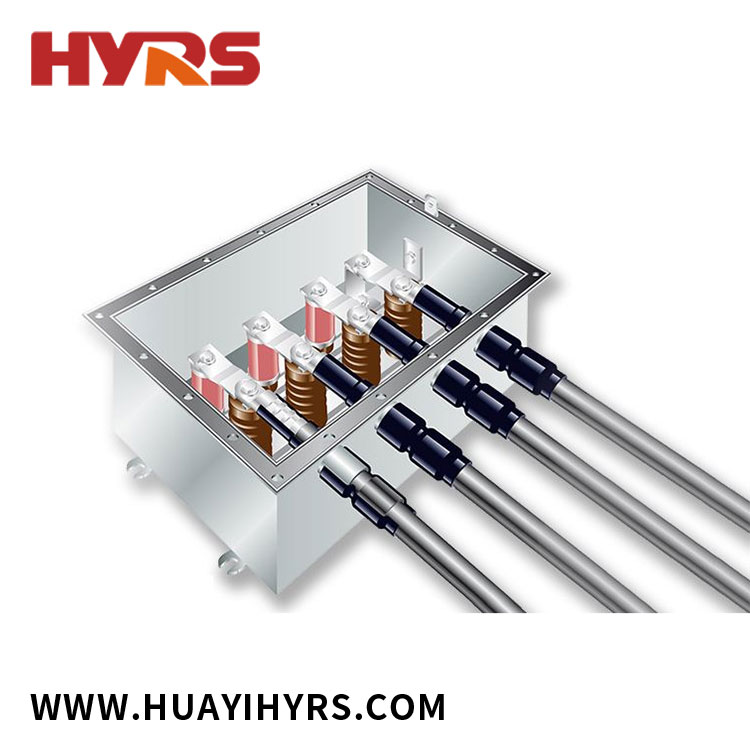 Жерден қорғайтын қораптың көптеген түрлері бар, JHX кросс-қосқыш қорабы жоғары вольтты (35кВ, 66кВ, 110кВ, 220кВ) бір ядролы кросс-байланыстырылған кабельдің металл қорғаныш қабатының көлденең қосылымды қорғау жерге тұйықталуына жарамды. металл қабықтың және оқшаулағыш қосылыстың екі жағындағы шамадан тыс кернеу, ол металл қабықтың индукцияланған кернеуін басқара алады, қабықтағы сақиналы токты азайтады немесе жояды, кабельдің өткізу қабілетін жақсартады, кабель қабықшасының сынуын болдырмайды. төмен түсіріңіз, кабельдің қауіпсіз және сенімді жұмысын қамтамасыз етіңіз. Қорап корпусы тот баспайтын болаттан жасалған, жоғары механикалық беріктігі және жақсы тығыздағыш және су өткізбейтін өнімділігі бар; T2 мыс шинасы шағын контакт кедергісі және тамаша өткізгіштігі бар ішкі терминал тақтасы үшін қолданылады; Қорғаныс қабатының қорғанысы сенімді өнімділікке ие, ол кабельдің қорғаныс қабатының шамадан тыс кернеуін тиімді болдырмайды және кабельдің қалыпты жұмысын қамтамасыз етеді. Протектор жақсы тығыздау өнімділігімен екі тығыздағыш пен бір қалыптауды қабылдайды.